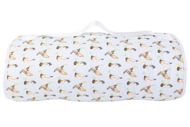 A charming wildlife-inspired print featuring hand-painted mallard ducks in soft greens, browns, and golden tones. Light, whimsical, and full of character — a playful pattern with a gentle outdoorsy feel.