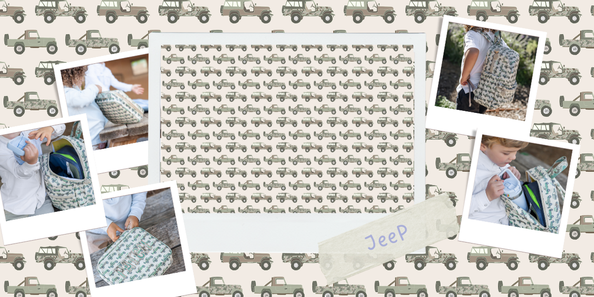 A playful, adventure-inspired print featuring hand-painted jeeps in soft greens, tans, and warm earth tones. Light and easygoing, it’s a charming pattern with a relaxed, outdoorsy feel.