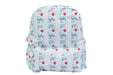 Coated, clean, and cute! The Backpack is offered in several wipeable classic patterns, and equipped with an outer zipped pocket and two drink holder sleeves.