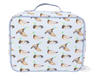 Coated, clean, and cute! The Lunchbox is available in several classic patterns, all wipeable. It is just the right size for your bento box. Equipped with a mesh inner pocket to hold your cooler packs and love notes, specifically placed on the back of the lunchbox leaving the front open for monogramming.